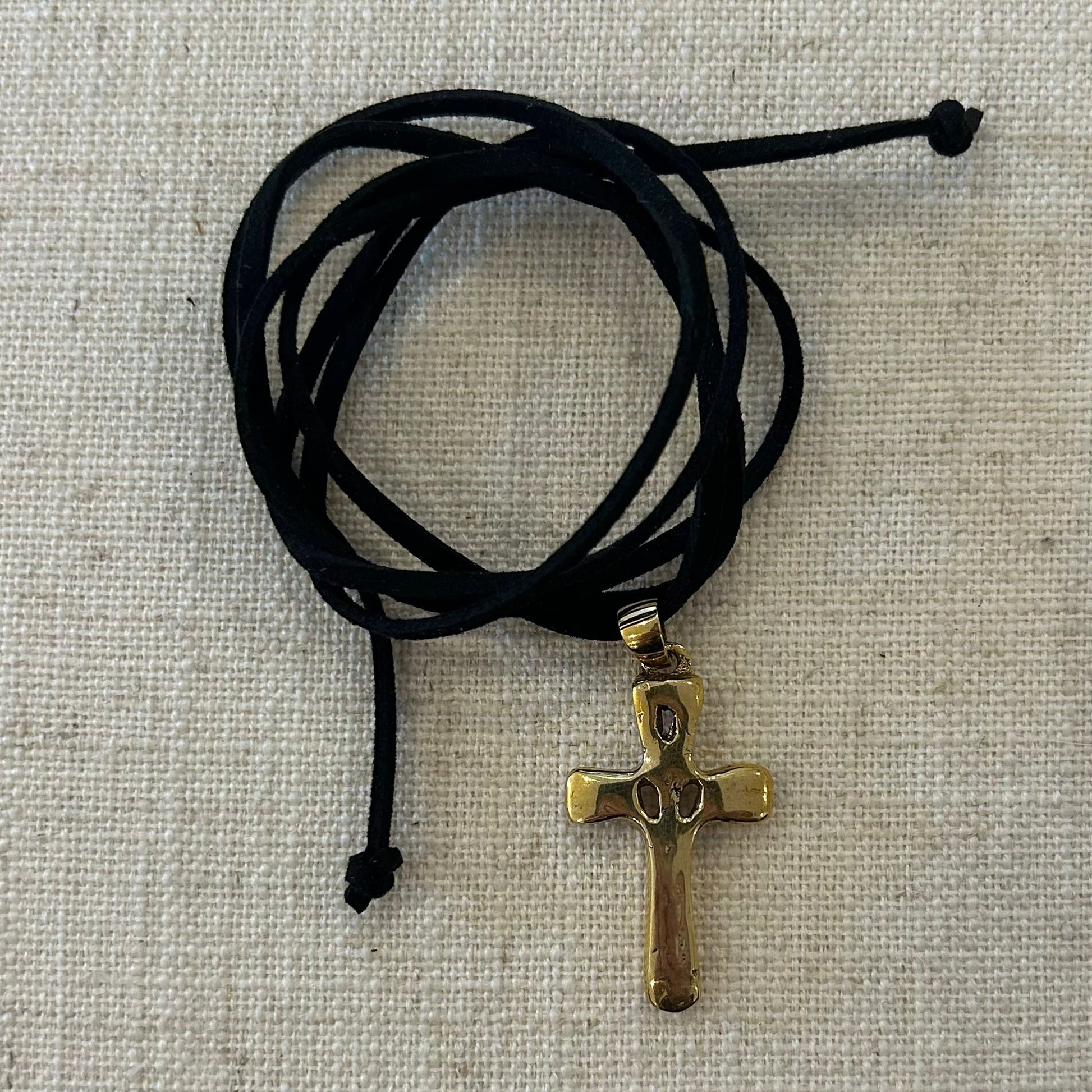 A simple yet meaningful piece — the Boho Cross Necklace is handcrafted in bronze and strung on a soft suede cord.